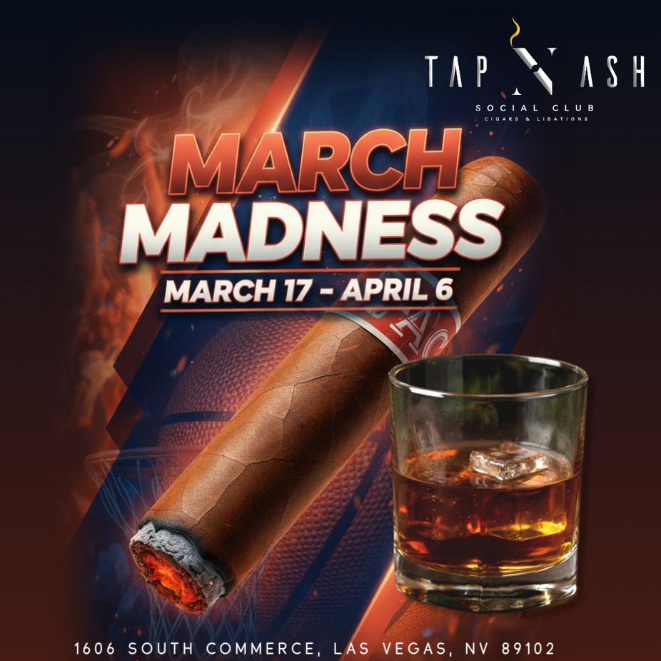 From March 17 through April 6, catch all the March Madness action at Tap N Ash Social Club where premium cigars, top-shelf libations, and game day energy come together.